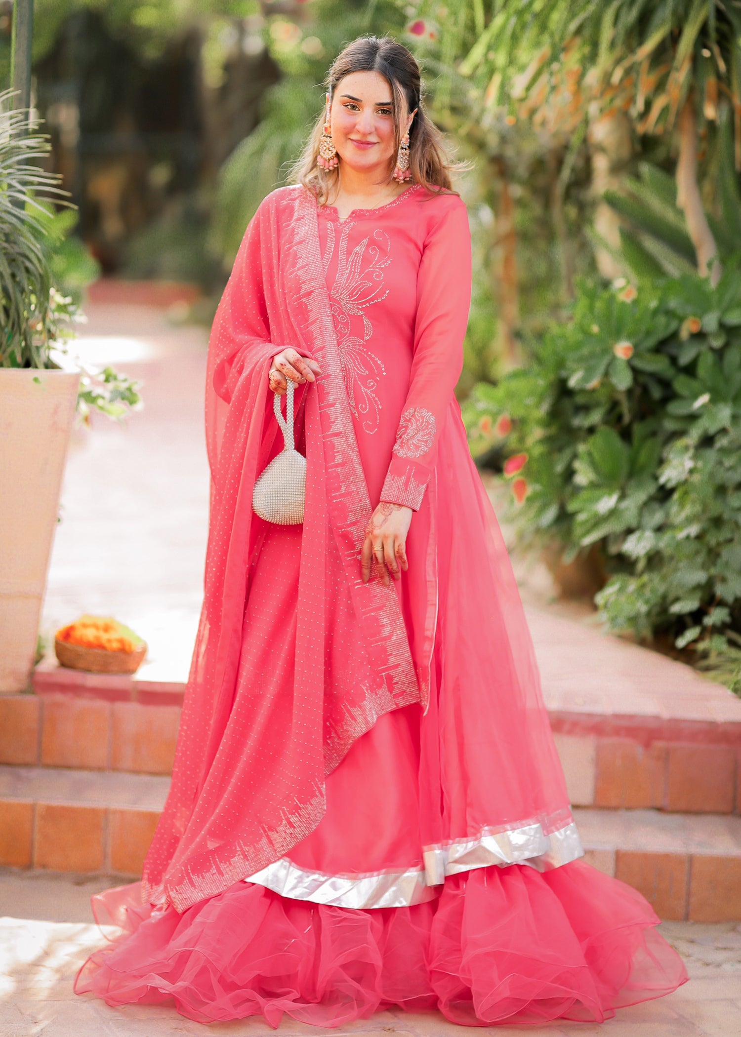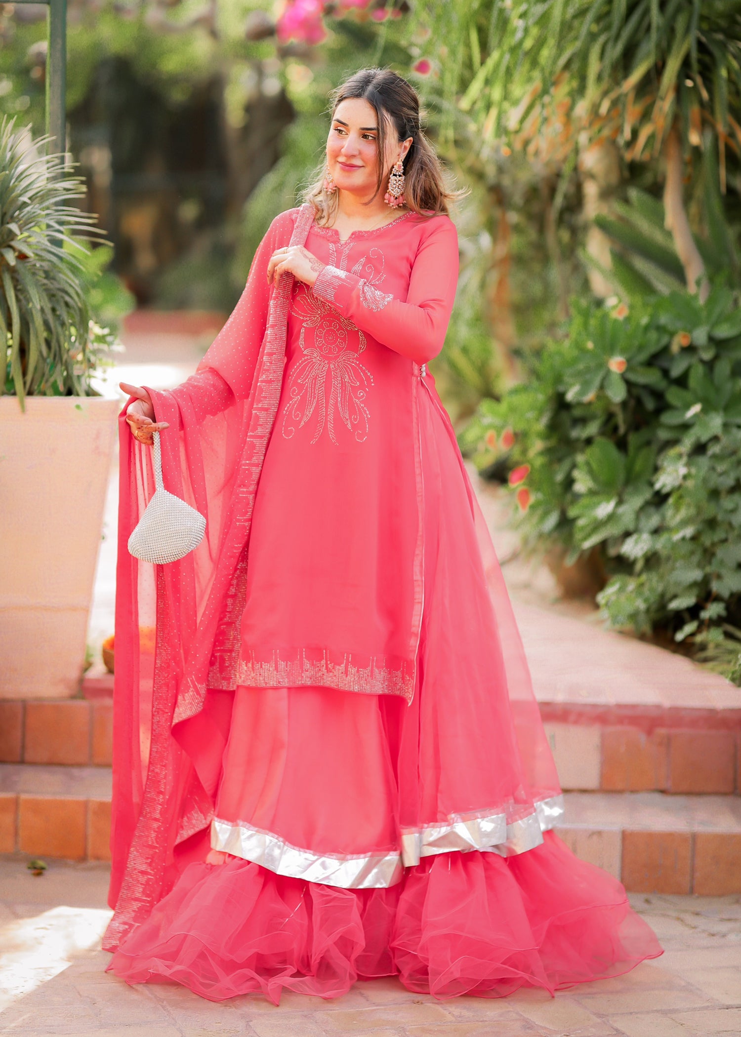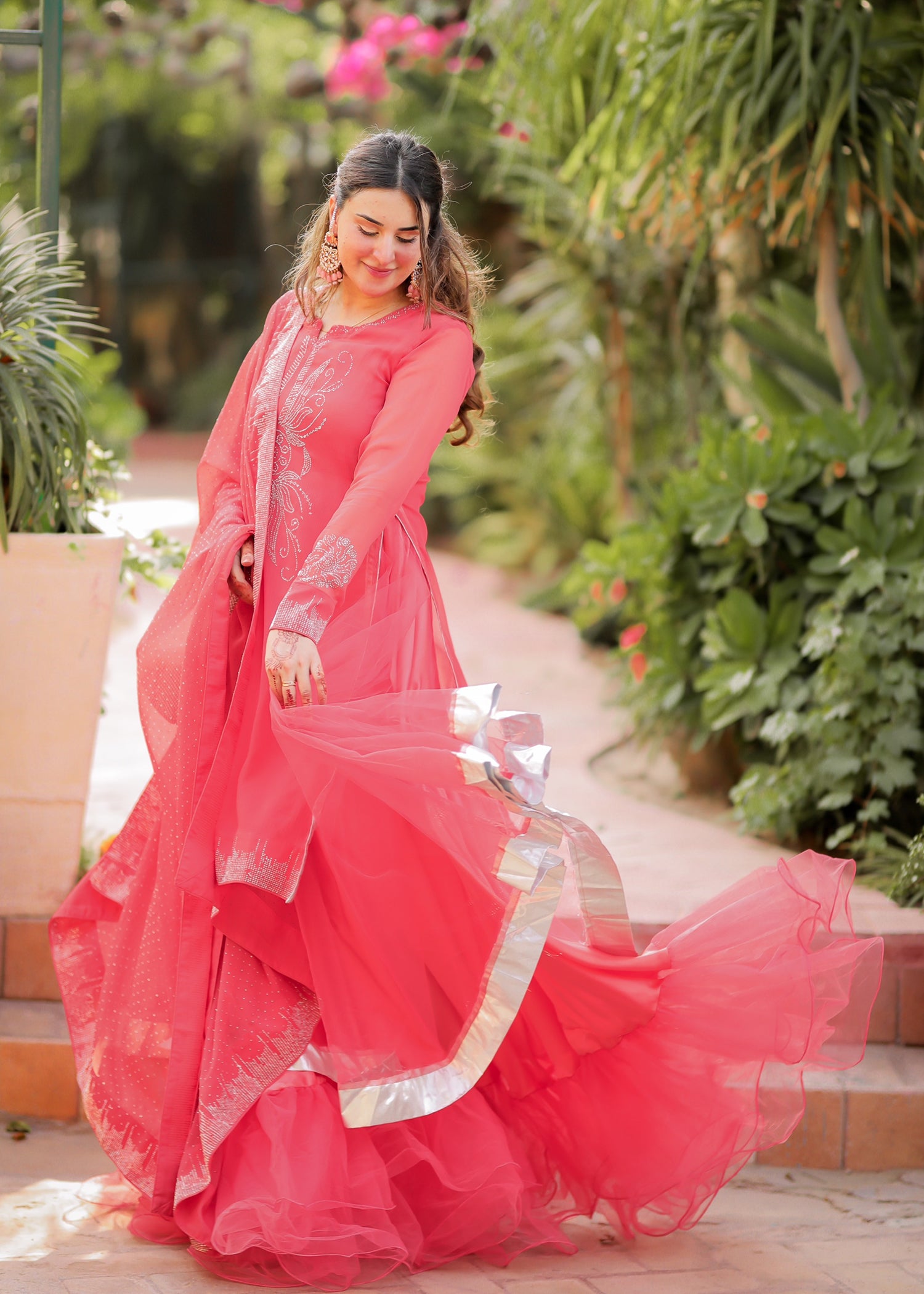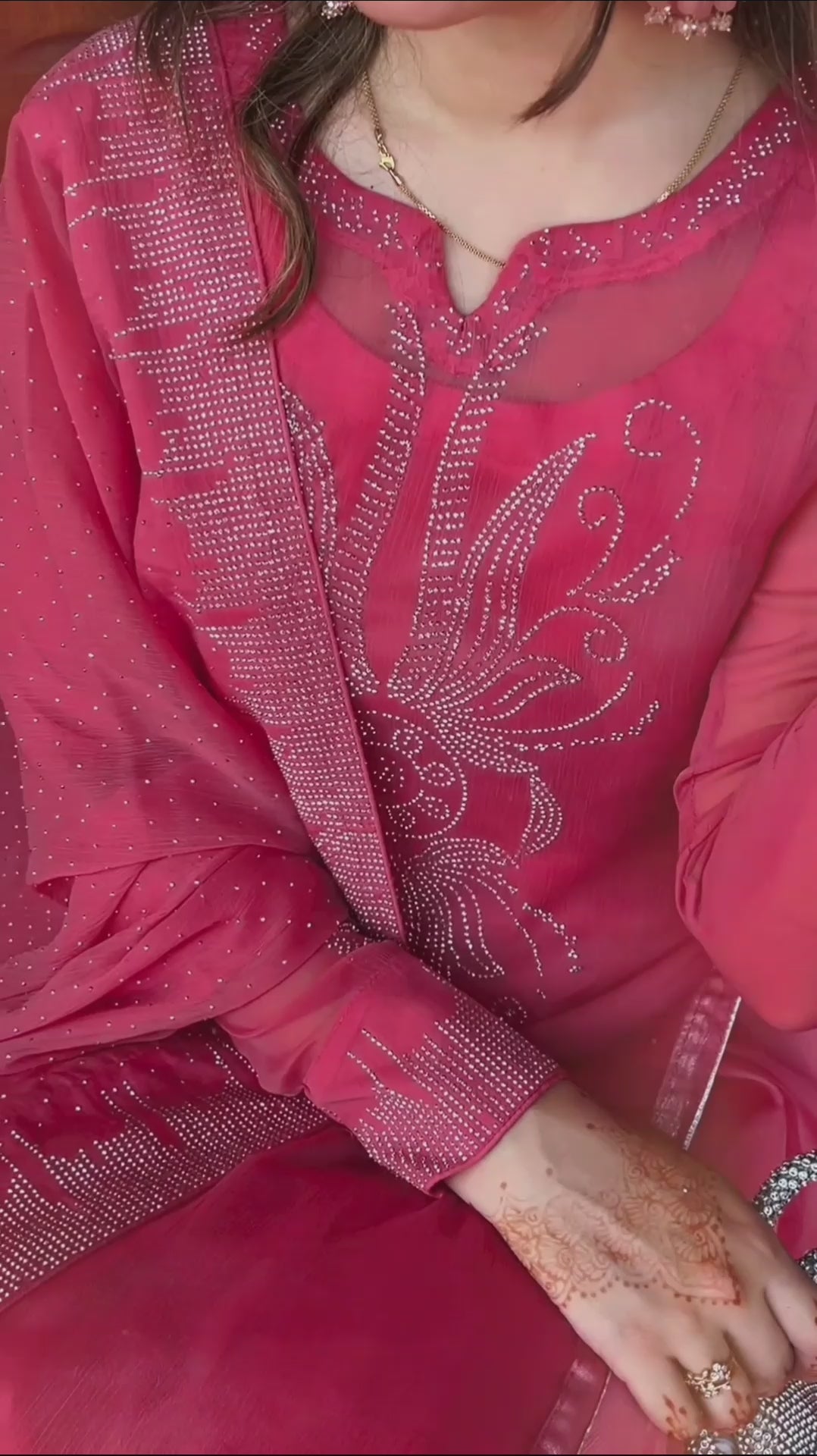 Fabric: Maxi(net), Gaown (pure chiffon). duppata (pure shiffon), inner (silk) attach