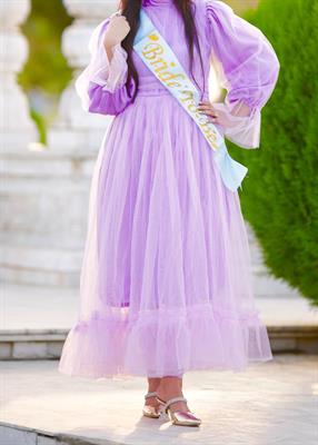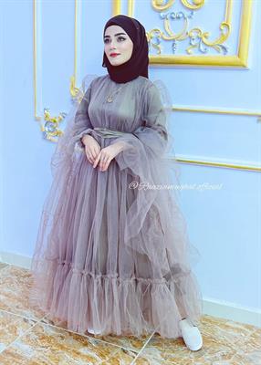 A CHARMING COMPOSITION IS LAYERD OVER THIS EXQUISITE ENSEMBLE RENDERED IN A GOLDEN BROWN SHADE, FEATURING WITH FULL LENGTH. HEAVY FLAIR OF NET.