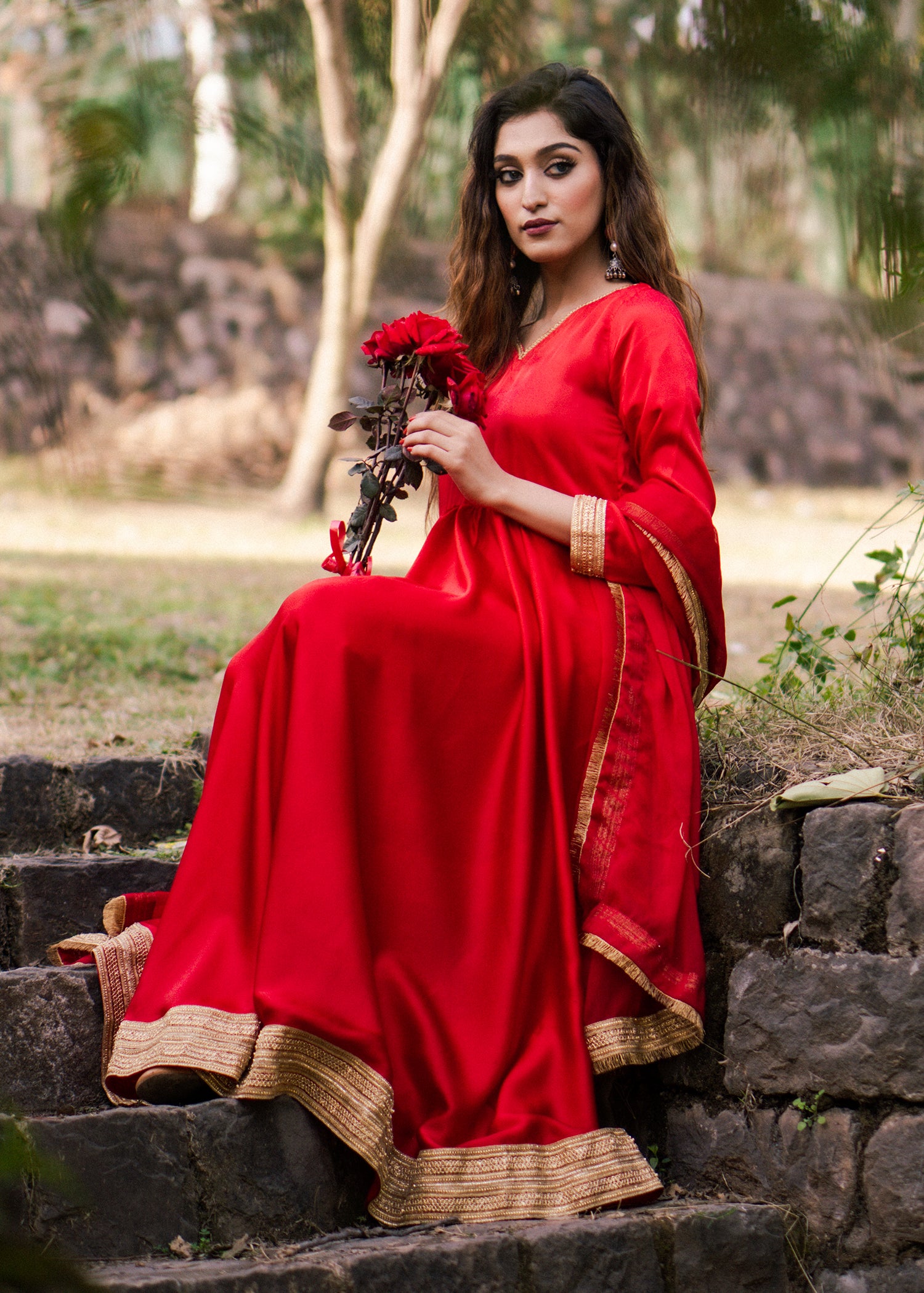 Draped in passion, the allure of red silk maxi meets the delicate charm of gota lace dupatta. A symphony of elegance and tradition. ❤️✨ #RedSilkEnchantment #GotaGrace